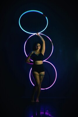 TwiLight Hoops proudly introduces the world’s first remote-controlled smart LED heart-shaped hula hoop! Our original design created in 2022 features standard LEDs, and a year later we’ve launched Heart Hoops equipped with high-definition LEDs for even more brilliance! Each hoop is crafted from durable 3/4" HDPE tubing and measures 26". If you’re looking for a custom size, don’t hesitate to reach out before placing your order. With over 300 light effects to choose from including colour palettes, strobe, flash, fade effects, solid colours, and chaser effects - Your performances will never be the same! Each hoop is powered by a single rechargeable battery that can be easily swapped out for extended playtime. Plus, the pocket-sized remote makes it simple to control all the hoop’s features. Illuminate your flow with TwiLight Hoops!
